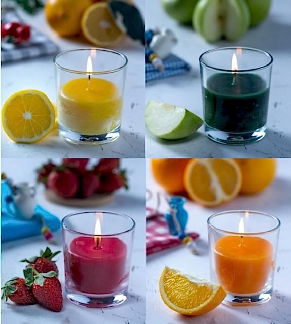 Meyvelerin eşsiz kokusu mumla birleşti. Frutti Mumlarda limon ve portakalın insana ferahlık veren enfes kokularına elma ve çilek kokularıda eşlik ediyor. Mutfaklar artık daha neşeli.